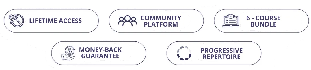 We’re so confident this course will transform your playing skills, we’re giving you a 30-day, no-questions-asked, money-back guarantee. If you don’t love your results, we’ll refuImagend your money—simple as that.
